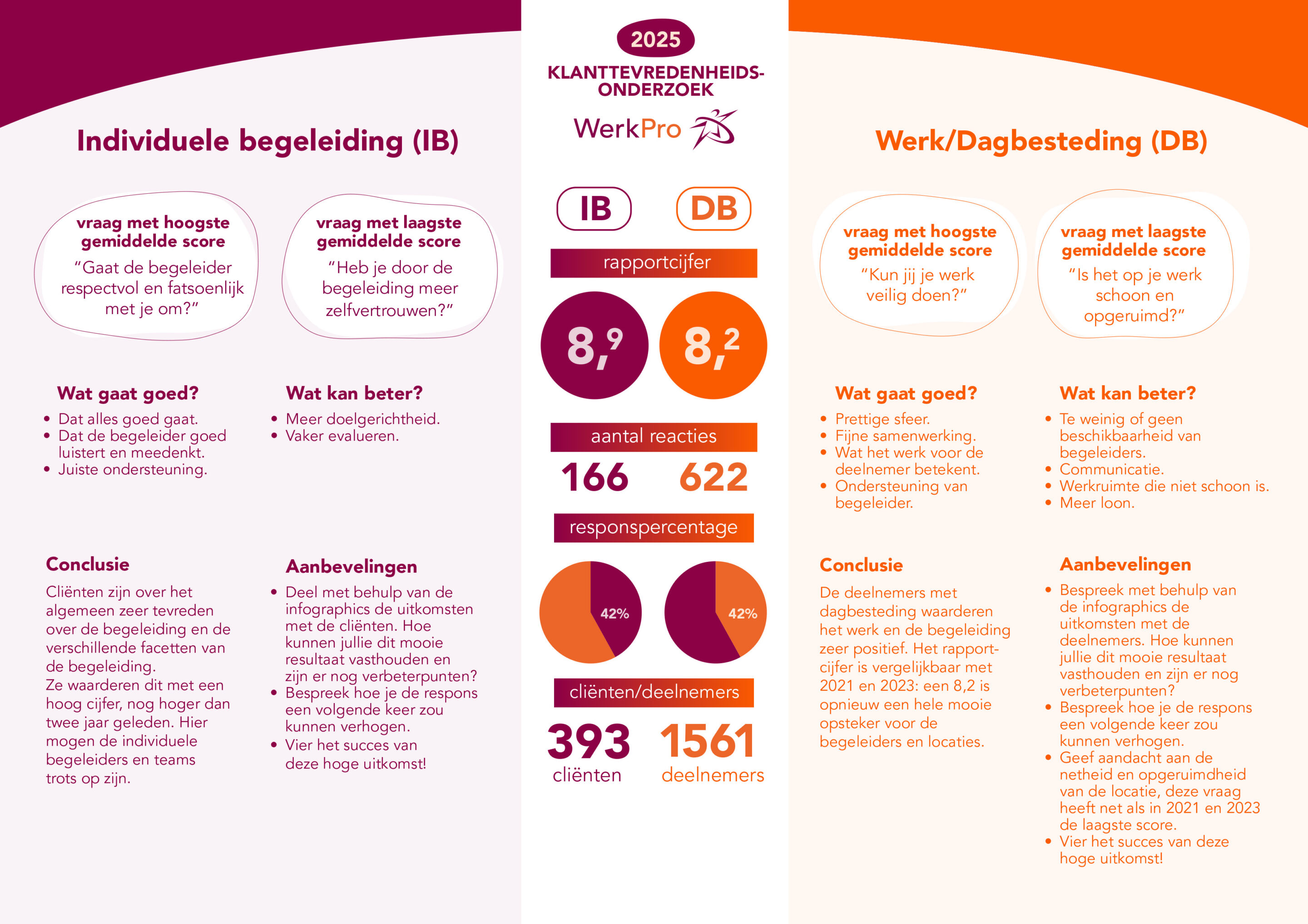 In de zomer van 2025 zijn 1954 enquêtekaartjes verspreid onder alle deelnemers en cliënten van WerkPro om hen te vragen naar de tevredenheid over de dagbesteding, het werk en de individuele begeleiding.