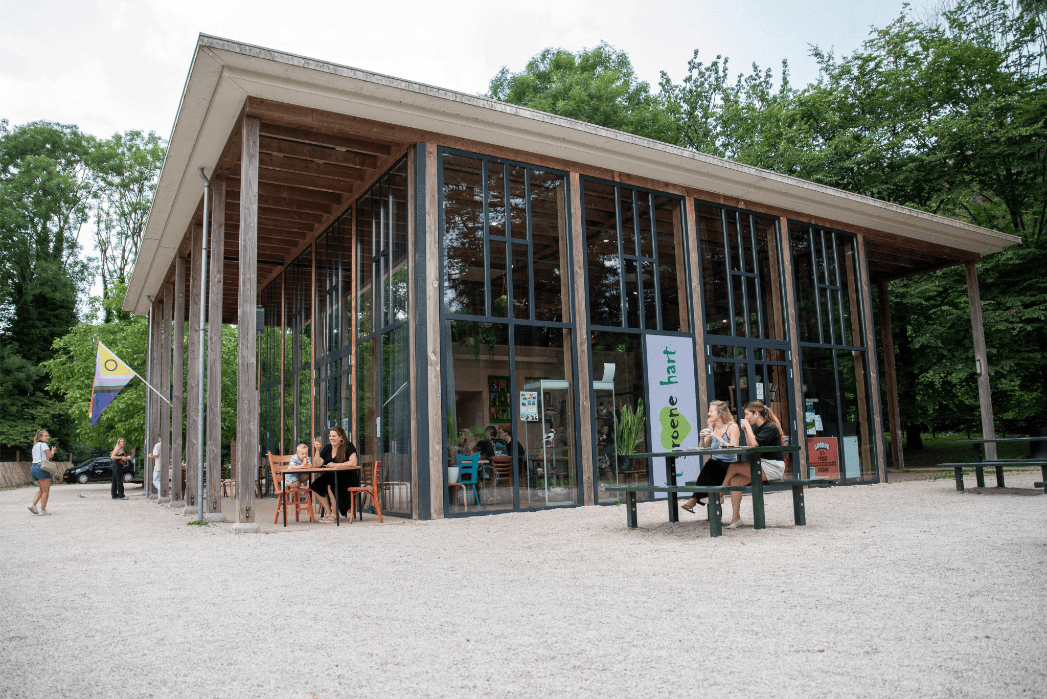 ’t Groene Hart is een gezellig horecapaviljoen in het Stadspark van Groningen, direct naast de kinderboerderij. Een fijne plek om neer te strijken tijdens een wandeling, met uitzicht op het groen en de dieren.